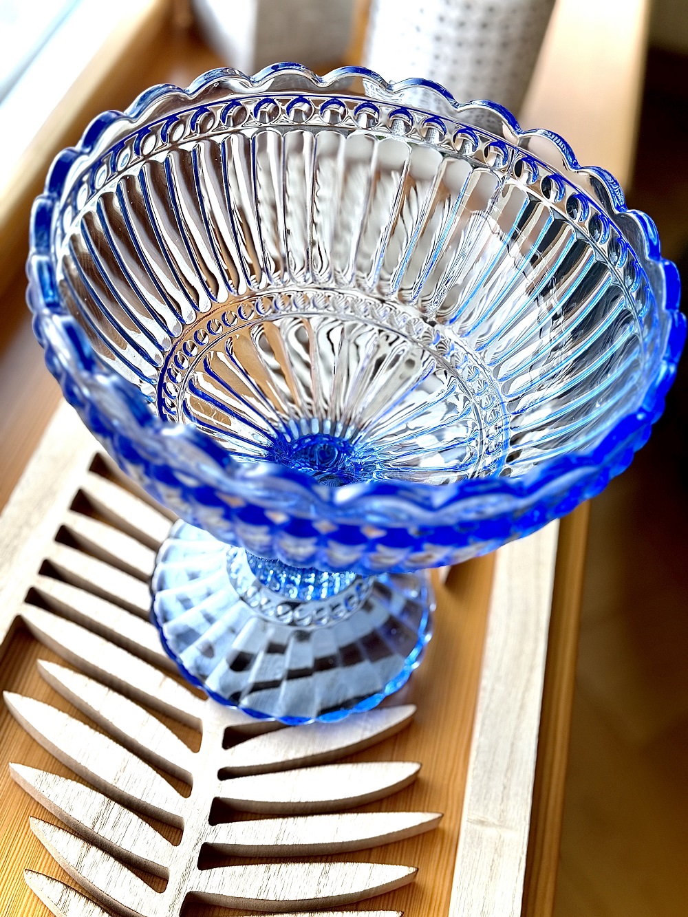 Didelis, elegantiškas dubuo - vaisinė, tobulas stalo ar virtuvės akcentas, o mylintys mėlyną spalvą, tikrai negalės atsispirti.