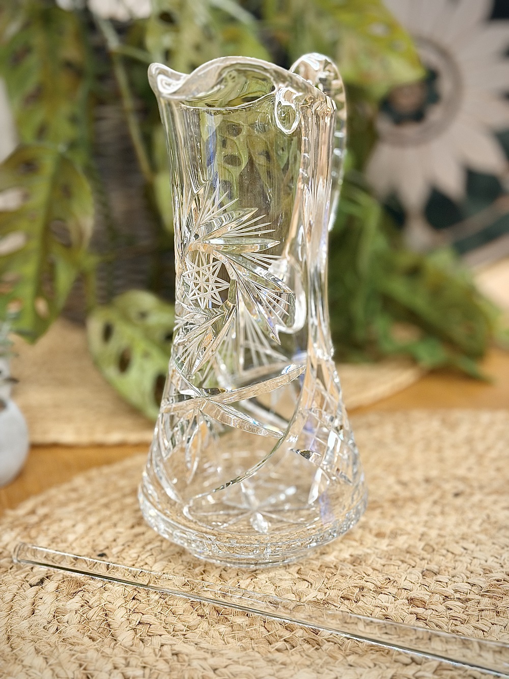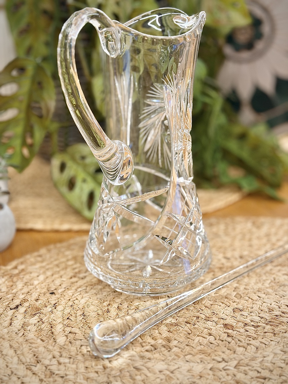 Vintažinis, vokiško krištolo ąsotis su stiklo lazdele.
